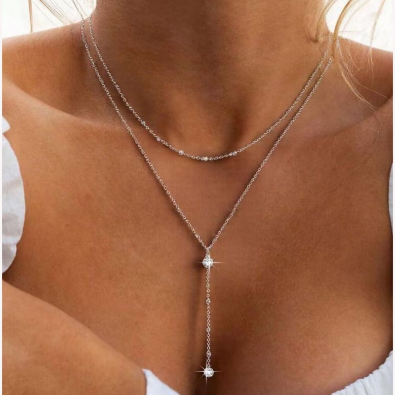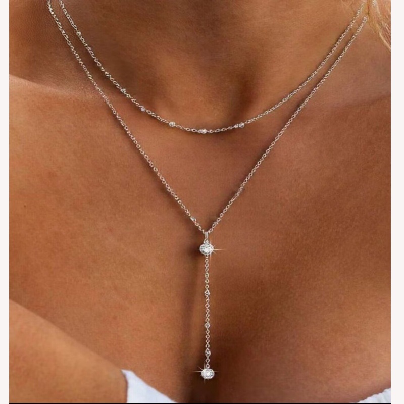 European And American Y Shaped Zircon Double Layer Necklace With A Niche Designer Inspired Look