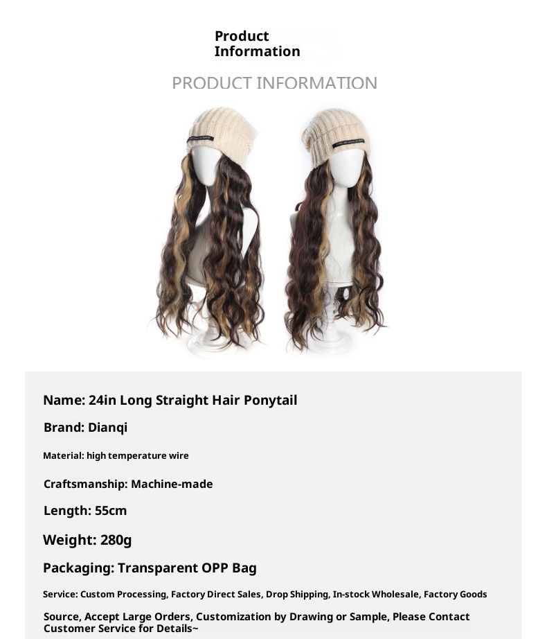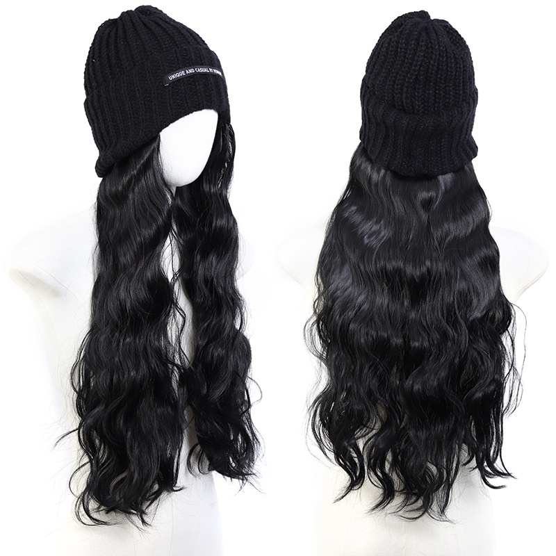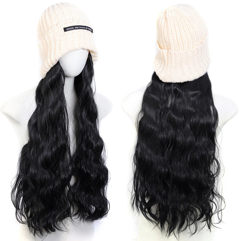 Hat Letter Knitted Hat Long One-piece Chemical Fiber Synthetic Highlight Wig