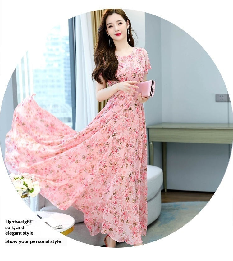 Womens Short Sleeve Floral Dress High Waisted And Loose Fitting